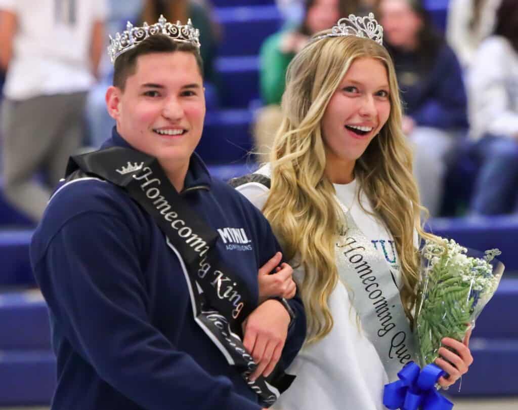 The MVNU student body crowned the 2025 King and Queen Friday night during Homecoming festivities before the men’s basketball game. Nominees for the Homecoming Court are selected by the student body for being Godly leaders in the school, having integrity and caring for others, showing a sense of responsibility and reliability, and high academic standing.