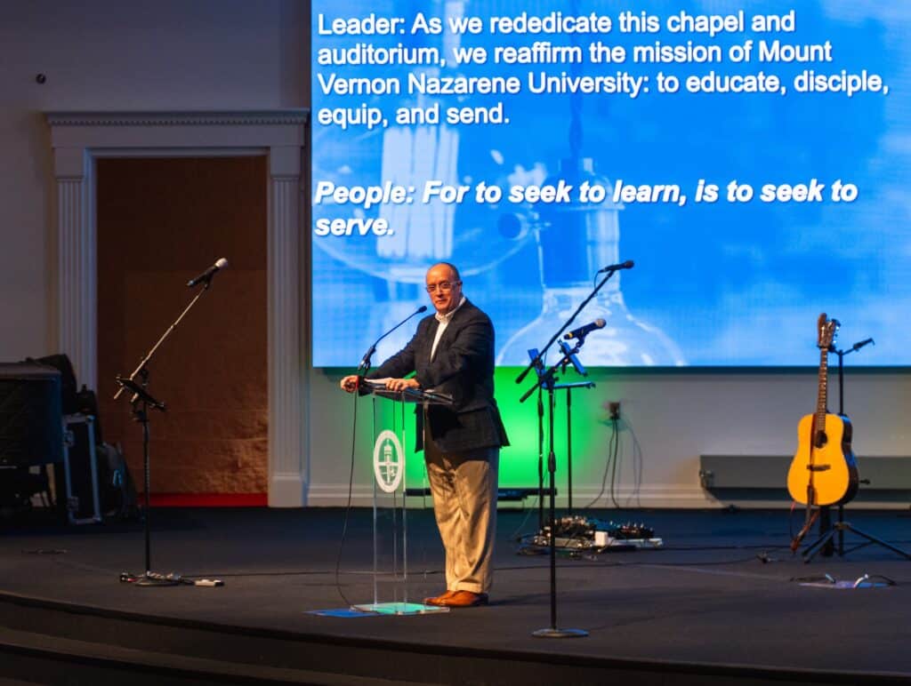 Standing in the newly restored space — renewed in beauty and strengthened in purpose — the community reaffirmed Mount Vernon Nazarene University’s mission to educate, disciple, equip, and send. Dr. Castleman expressed the community’s hope: “May this place be a sanctuary of worship, a classroom of wisdom, a gathering place of community, and a launching ground for lives of Christ-like service.”