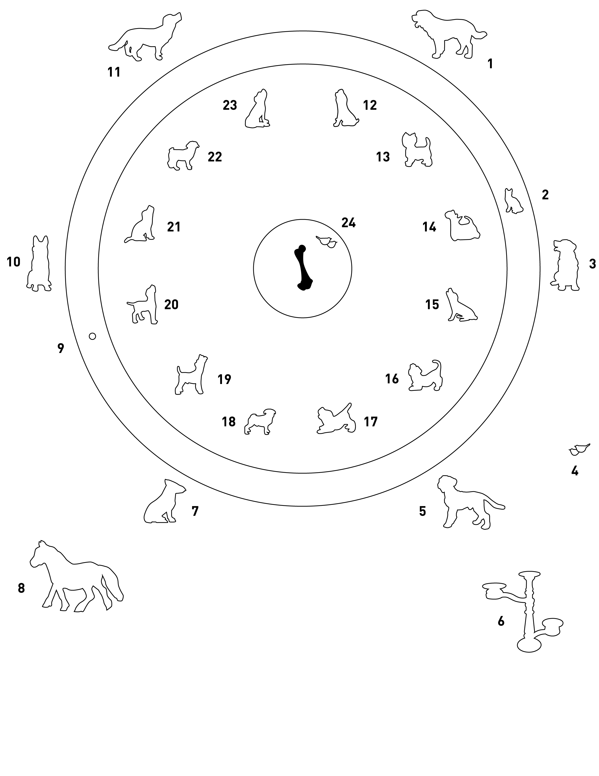 The fountain features painted cast aluminum sculptures of 18 dogs, one cat, two pairs of birds, a pony and an apple.